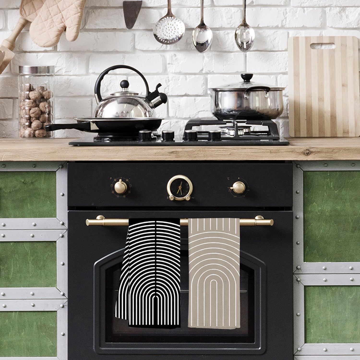 Boho Geometric Towels Set of 2- Black and Begie Decorative Kitchen Towels, Decorative Kitchen Towels, Boho Hand Towels for Bathroom, Decorative Bathroom Hand Towels, 16×24 Inches